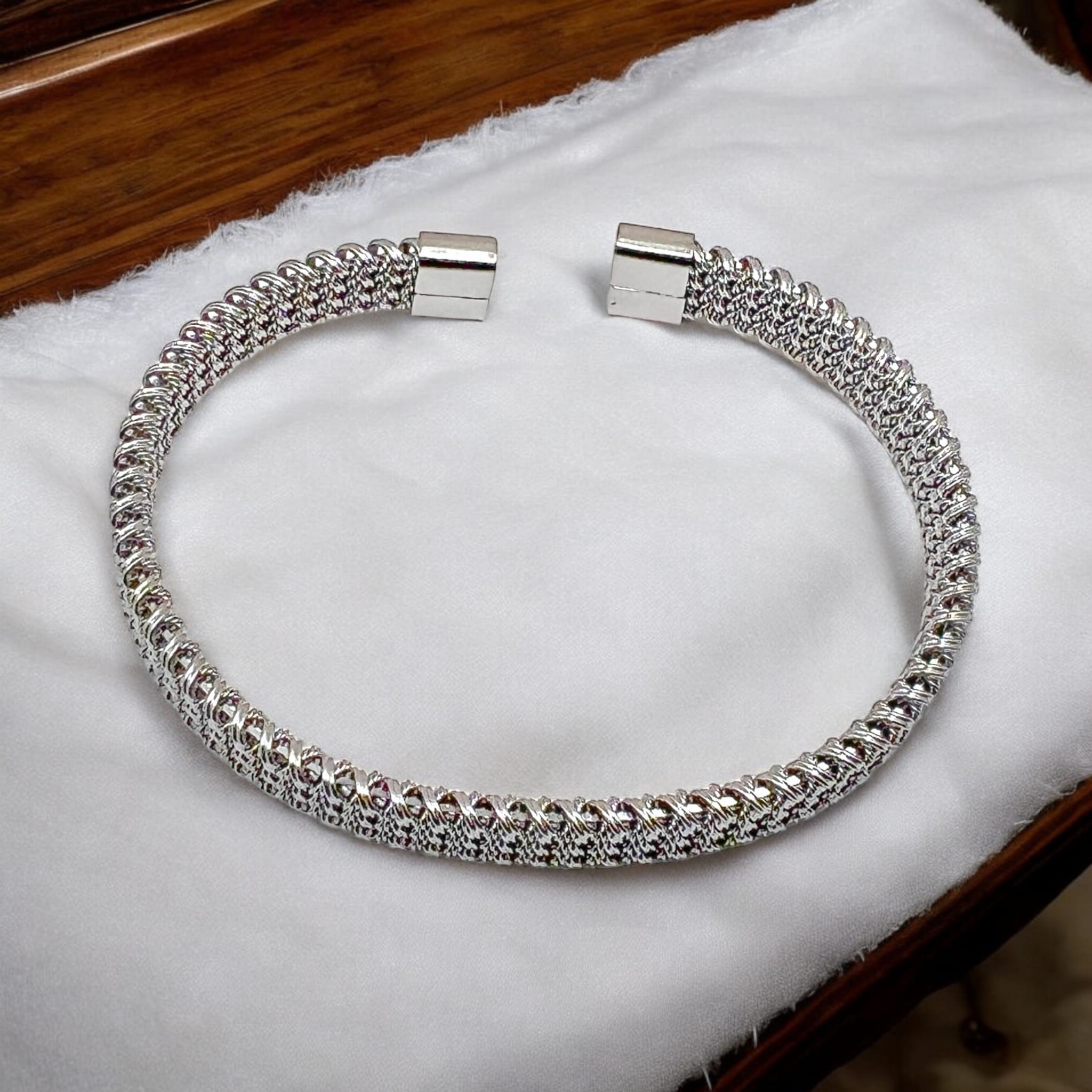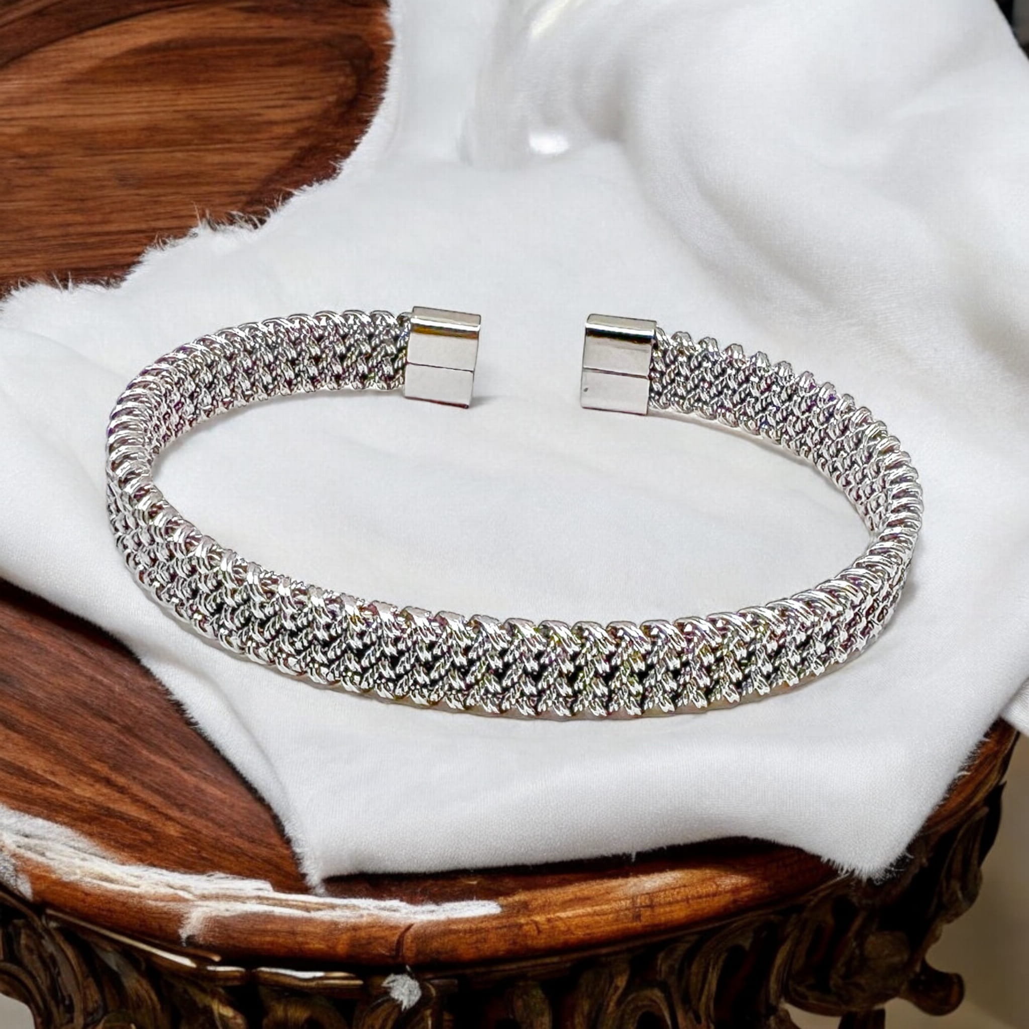 Bransoletka z grubszej siatki w kolorze srebrnym
