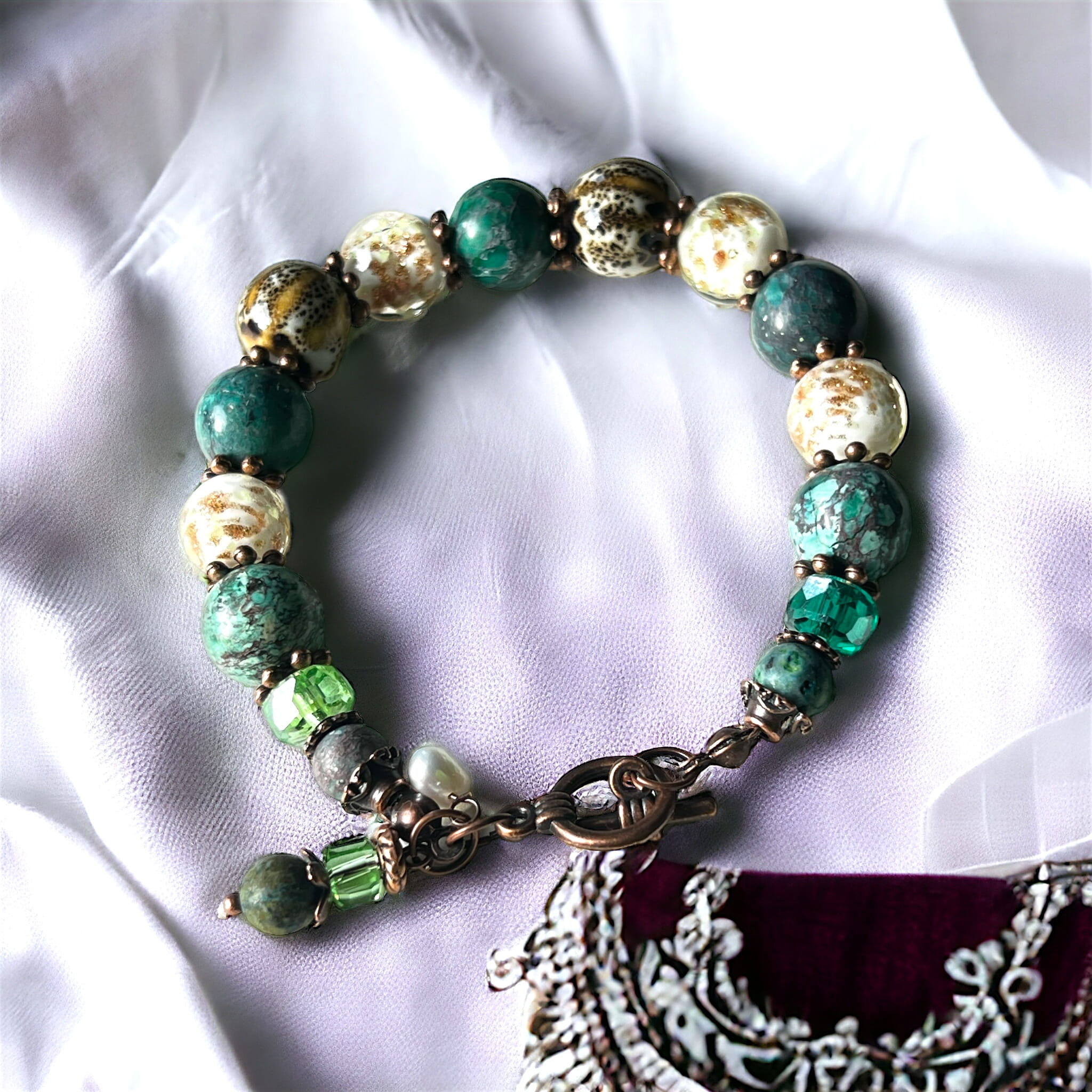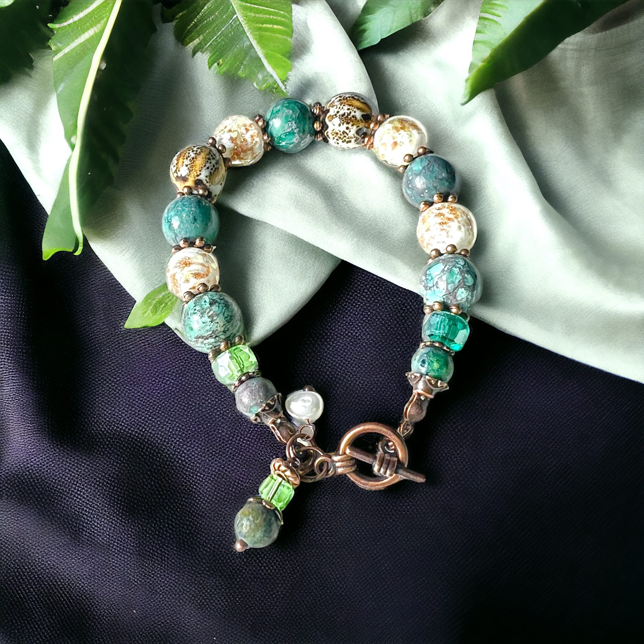 Bransoletka zielona łąka z turkusem afrykańskim