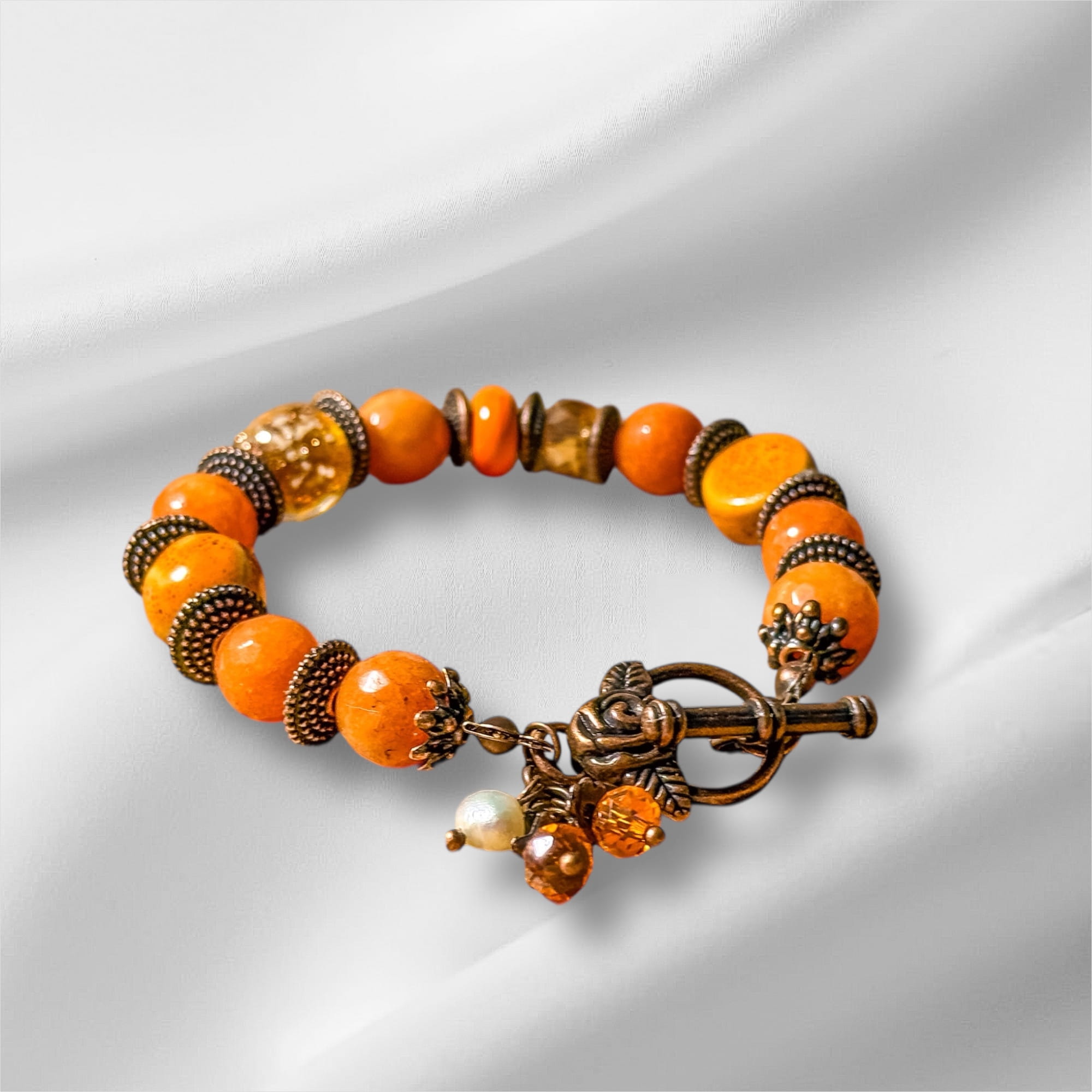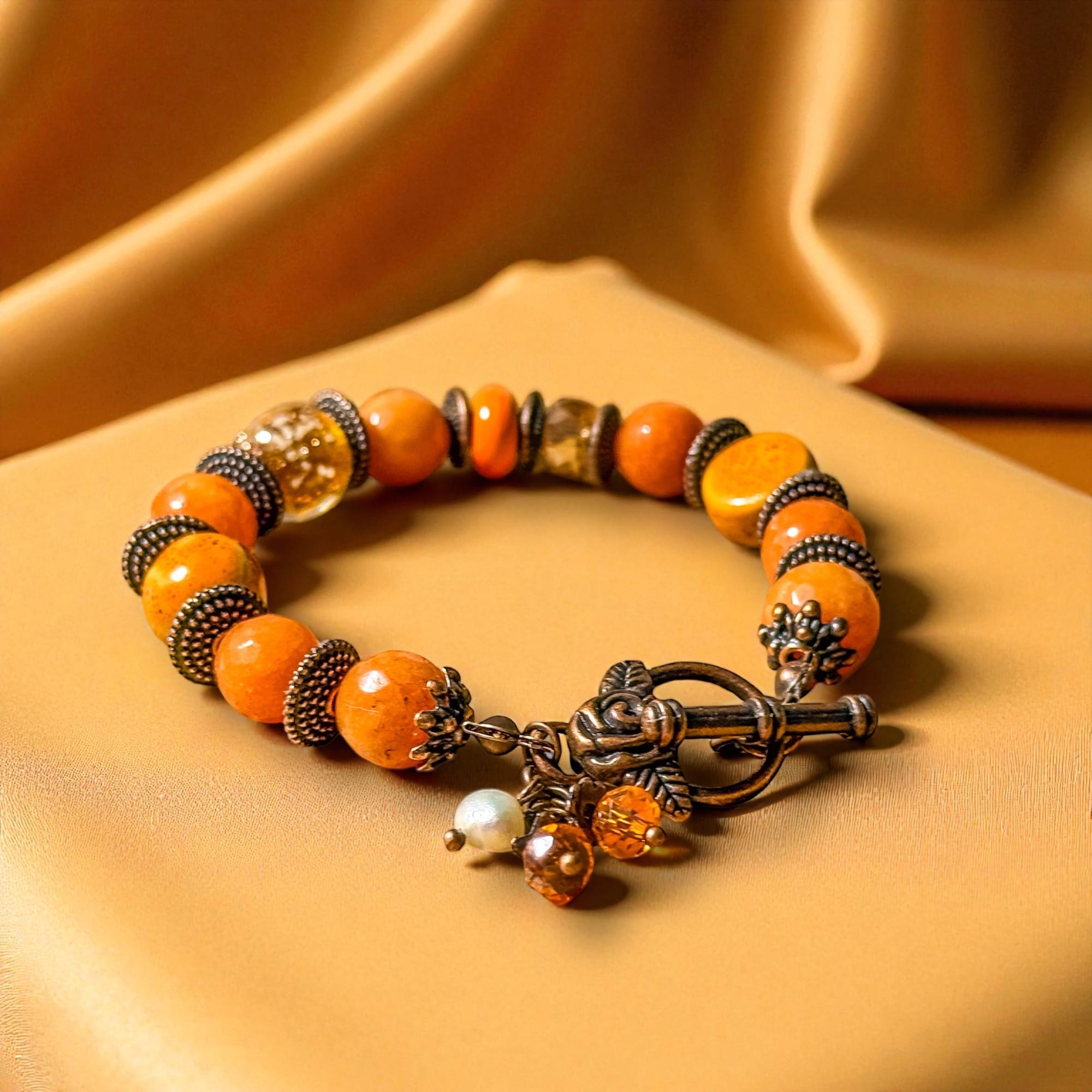 Bransoletka w odcieniach zgaszonej pomarańczy.