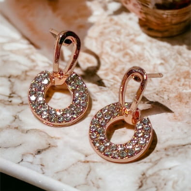 Kolczyki wkrętki z kółeczkami wypełnionymi cyrkoniami. Pięknie wykonane, z dobrej jakości materiałów, abyś mogła cieszyć się ich eleganckim wyglądem przez wiele lat. Są uniwersalne, możesz je nosic na co dzień jak i na świąteczne okazje.